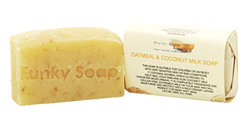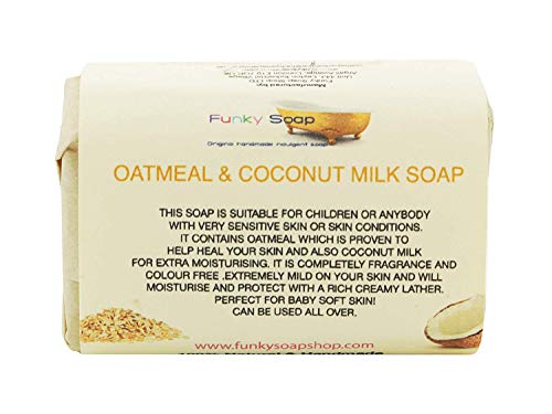 - Jabón sin perfume y saludable para la piel sensible / piel de los niños, con leche de coco y avena añadidas