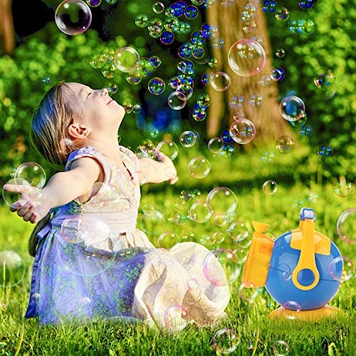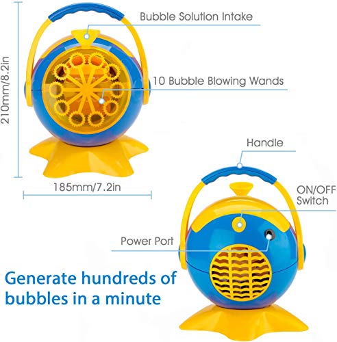 - 【Motor de Alto Rendimiento】: Nuestra maquina pompas jabon para niños funciona con un motor de alta calidad, trae menos ruido y más burbujas, una vez que se inicia, 10 varitas burbujas giran continuamente y producen más de 800 burbujas por minuto, El motor superior también hace que nuestra máquina sea más duradera.