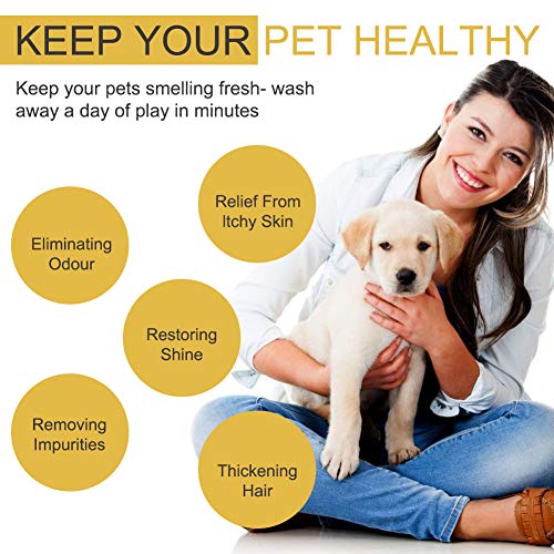 - Funciones potentes: nuestro champú antipulgas mantendrá a su mascota libre de pulgas e insectos, mientras la mantiene limpia, brillante, acondicionada y con un olor encantador. Este champú para mascotas es ideal para limpiar abrigos sucios, acondicionamiento y desenredado de abrigos y para humectar la piel con abrigos cortos a largos.