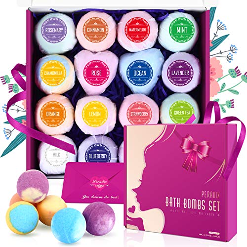 Peradix Bombas de Baño,16 piezas Bolas de Baño con Aceites Esenciales,Spa Baño de Burbujas para Hidratar la Piel Seca Sales de Baño de Bombas de Baño Espuma de Regalo para Mujeres Novias y Niñas