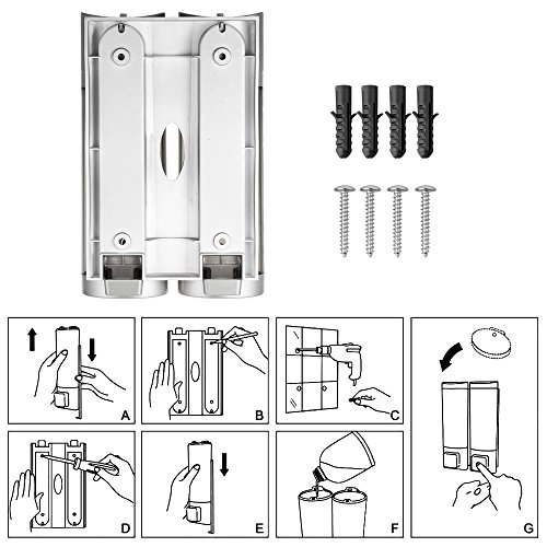 Anself - Dispensador de jabón Doble para Pared, Jabonera de loción líquido, 2x200ml