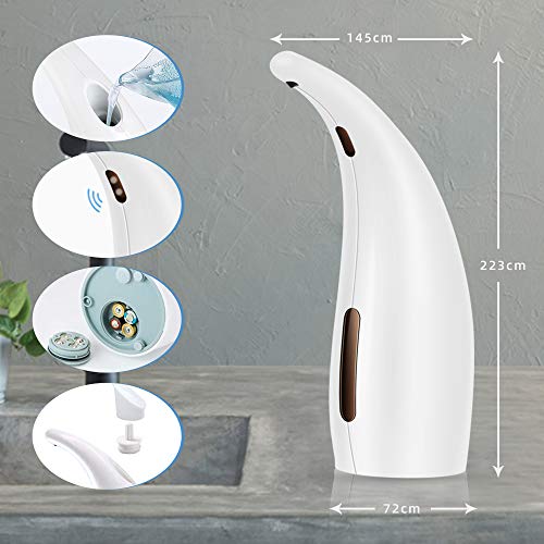 - ❤️【Simple y elegante】:Dispensador de jabón automático, hecho de material ABS de alta calidad, resistente, anticaída y antioxidante. combina perfectamente con la cocina o el baño. Y se puede transportar, especialmente conveniente y fácil de usar.
