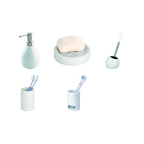 Wenko Polaris Dosificador Jabón 0.39 L, Cerámica, Blanco, 9x9.5x16 cm