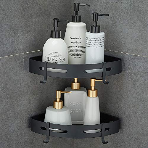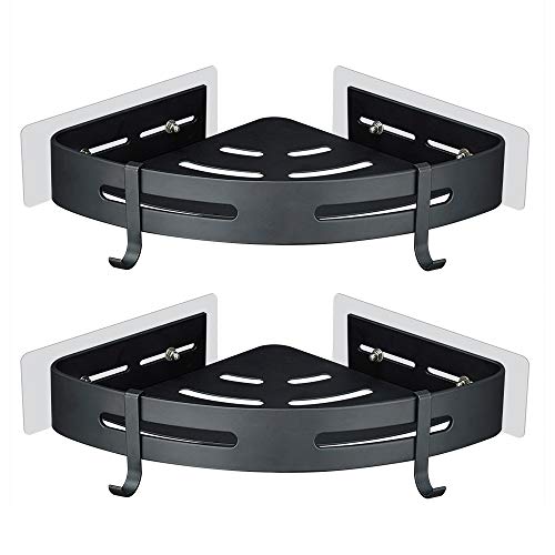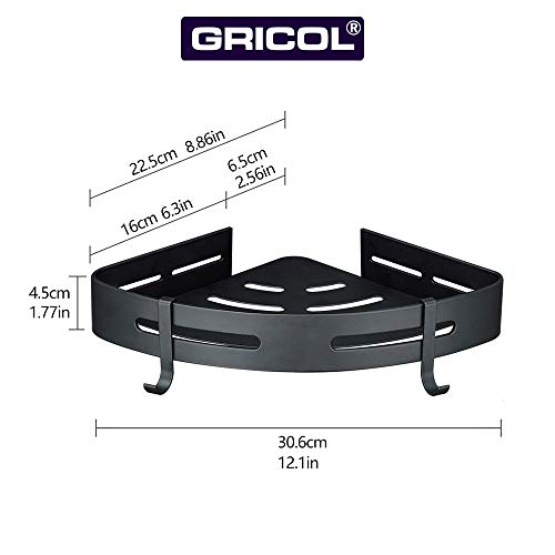 Gricol Estante para Esquinas de Ducha Sin Taladrar de Aluminio Aeronáutico con 2 Ganchos Estanteria para Ducha Antioxidante Autoadhesivo para Artículos de Baño 2 Piezas (Negro)