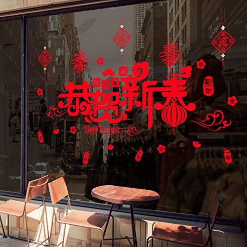 Jour de l'an, fĂȘte du printemps, dĂ©corations du nouvel an, autocollants en verre de fenĂȘtre, autocollants de porte, autocollants de fleur de fenĂȘtre, autocollants de fenĂȘtre 60 * 90
