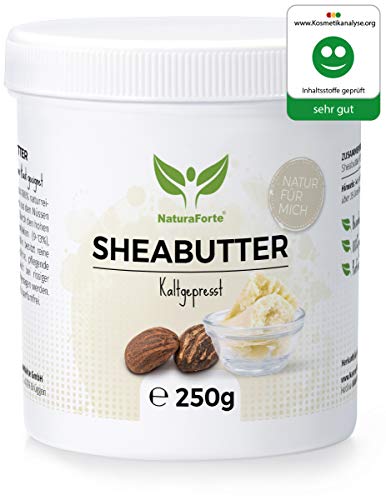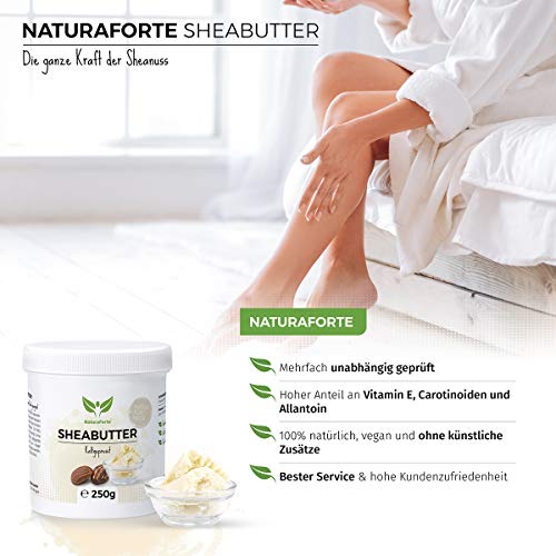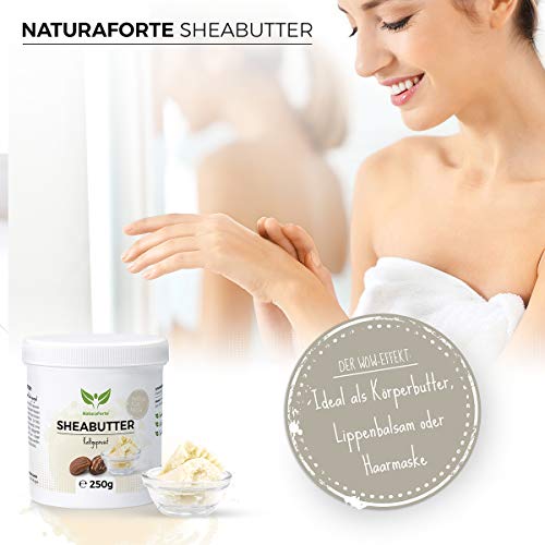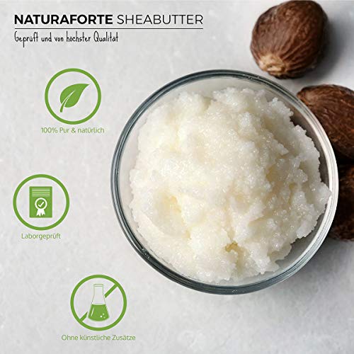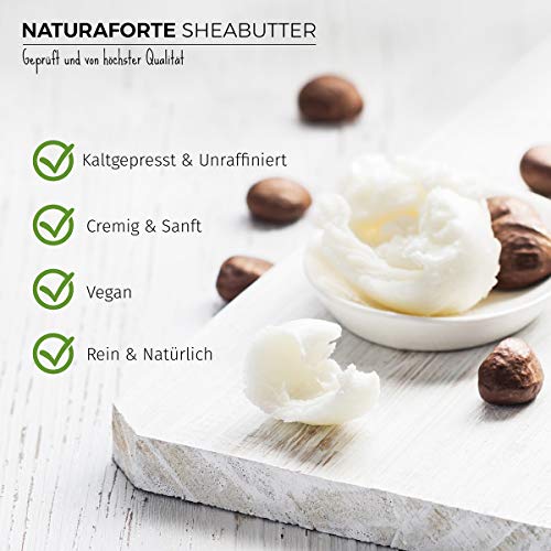 NaturaForte Manteca de karité 250 g, pura y natural, prensada en frío y sin refinar, hidratante, rehidratante. Testado en laboratorio y sin perfumes ni aditivos artificiales