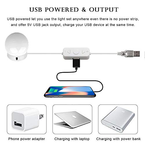 - 4.6M de Longitud Diseño Fácil de Usar - Este espejo de maquillaje se ajuste a la mayoría de los espejos. El exceso de cables se puede ocultar debajo de las bombillas para mantener su espejo hermoso y ordenado después de la instalación. Las bombillas adicionales pueden cortarse.