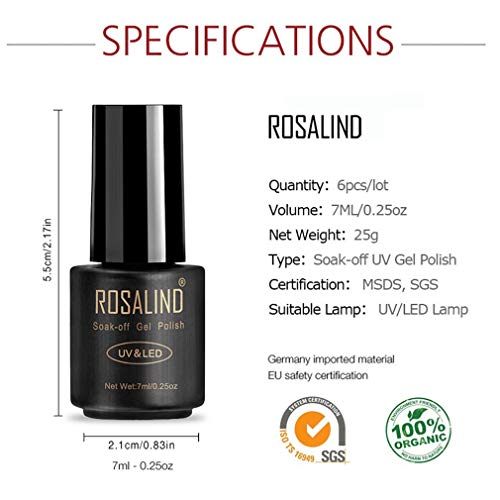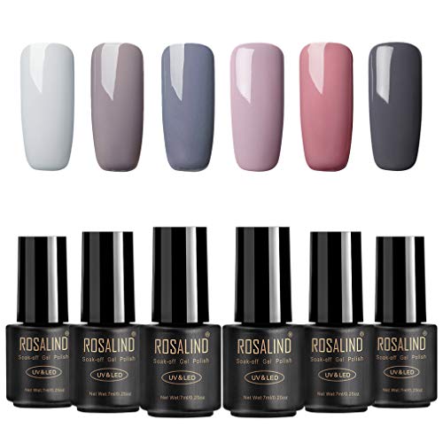 ROSALIDN Esmalte Semipermanente de Uñas en Gel UV LED Color Desnudo Esmalte de Uñas 6pcs Kit Uñas de Gel Manicura Soak off 7ml
