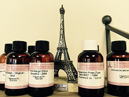 - Utiliza común – popurrí, jabón, velas, piel y cuidado del cabello – moisturizing: 1% de aceite, geles de baño: 1% a 5%/5% jabón: 3% a 5%/home spray, difusor, potpourry, productos de limpieza: hasta 20%/velas: 1% 5%/cuerpo toque: 15 A 20%. los proveedores de productos de París fragancias son únicas – no tenemos o representantes asegúrese de que usted está comprando el productos originales de Paris fragancias.