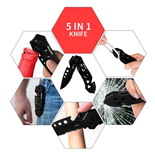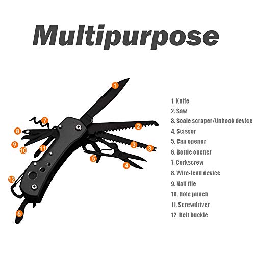 - ❤ [CUCHILLO MULTIUSO 11 EN 1]: con 11 de cuchilla a destornillador Phillips, tijeras, sierra para metales, abrebotellas, abrelatas, etc. Utilice esta cuchilla multiusos para reparar y reparar casi cualquier hogar y es ideal para sobrevivir.