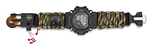 Reloj Tactico Militar Pulsera Digital Paracord Camuflaje Barbaric Incluye silbato, pedernal, brújula y termómetro para Caza, Camping, Supervivencia Albainox 33889-CP + Portabotellas de regalo