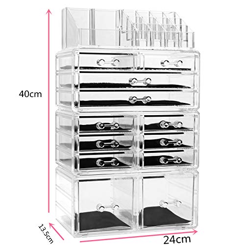 D4P Display4top Caja acrílica Estante de maquillajes Maquillaje Cosméticos Joyería Organizador (12 Drawers Transparente)