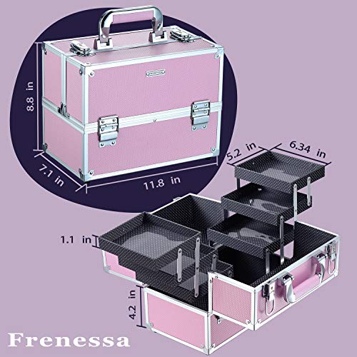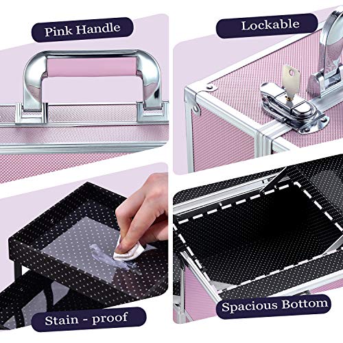 Maletin Maquillaje Grande Profesional Neceser Organizador Maquillaje Vacio para Maquilladores Caja Maquillaje de Viaje Joyero Organizador Esmalte de Uñas con 6 Bandejas Regalos para Mujer, Rosa