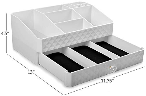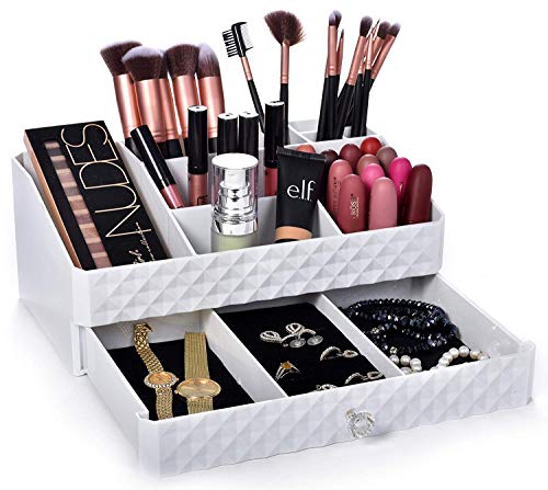 Display4top - Organizador de joyería multifunción para maquillaje, accesorios cosméticos, cajas de almacenamiento de maquillaje, color blanco.