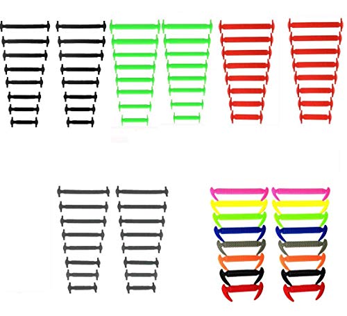 MIRX Cordones elásticos planos del zapato del silicón, ningunos lazos impermeables del cordón para los cabritos y los adultos (Rojo + Verde + Negro + Gris + Arco Iris)