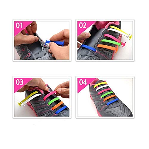 - Each shoelace is independent, can be easily thread through eyelets of shoes, The elastic silicone shoe laces will adjust its tightness according to your footwear so that you don't need to worry the size will not fit you