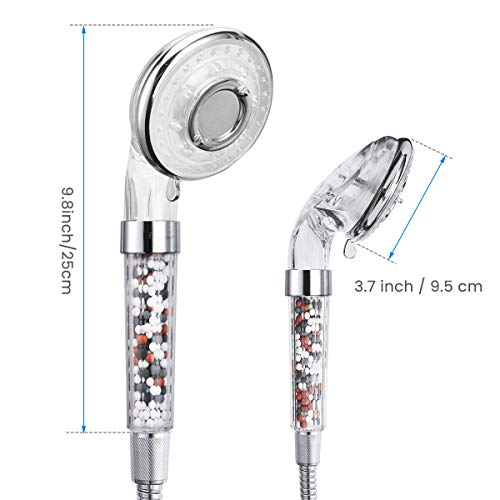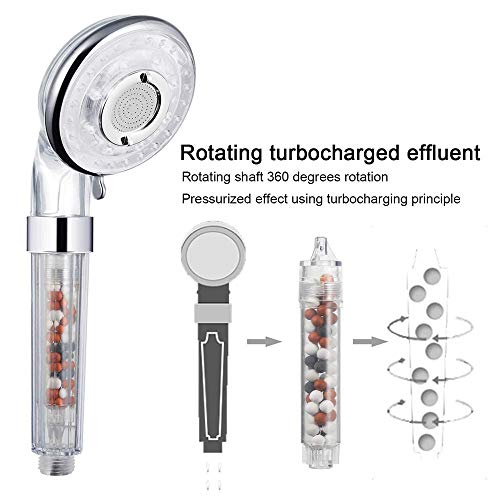 - 【La función de filtro】Las bolas de piedras minerales iónicas negativas y negativas incluidas pueden filtrar y purificar completamente el residuo en agua, lo protege reduciendo el cloro y absorbiendo sustancias nocivas en el agua,cambia el pH del agua ácida, muy beneficioso para la función del cuerpo, suaviza y purifica el agua de la ducha para suavizar la piel y el cabello.
