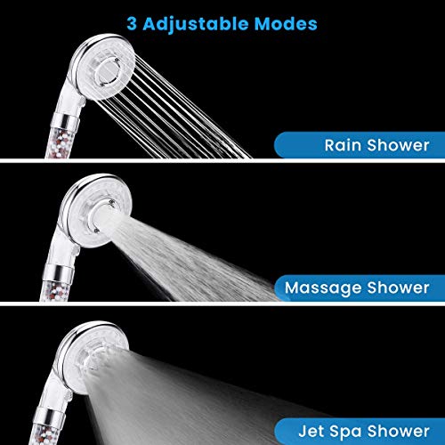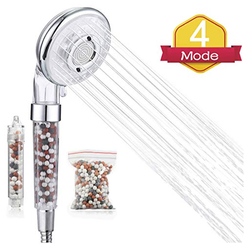 Yolistar Ducha 4 modos cabezal de ducha eficiente que ahorra agua, egative ion chlorine filtración con Alta Presiòn, viene con una bolsa de piedra de filtro mineral.