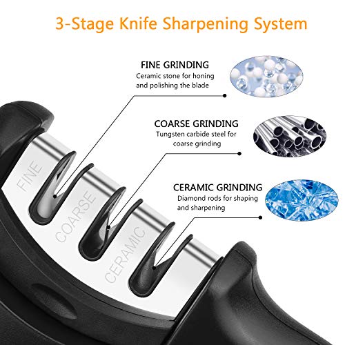 - [Kit multifuncional] La herramienta de elección para chefs de afiladores de cuchillos de cocina es extremadamente efectiva y duradera, para uso con tijeras, cuchillos de cocina de acero de borde recto, cuchillos de cocina, de utilidad, de corte, de torneado, rebanadoras, deshuesadoras, fileteadoras y cuchillas. no dude en contactarnos si hay algún problema, le ofreceremos la solución adecuada por primera vez. ¡Compre ahora y afile todos sus cuchillos y devuélvalos a su máximo esplendor!