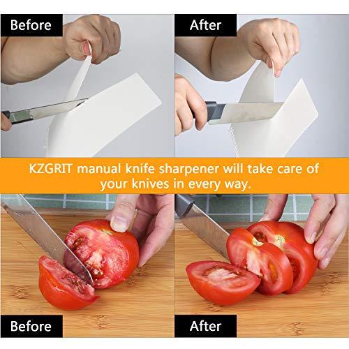 - Fácil de Usar: Simplemente coloque la hoja embotado en cada una de las ranuras y tire suavemente del cuchillo en una dirección pocas veces, cualquiera puede afilar sus cuchillos en cuestión de segundos