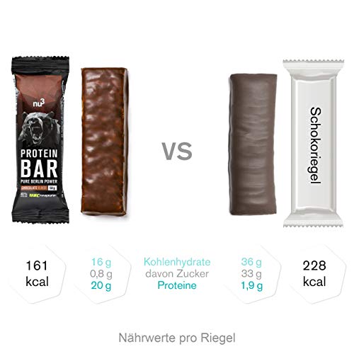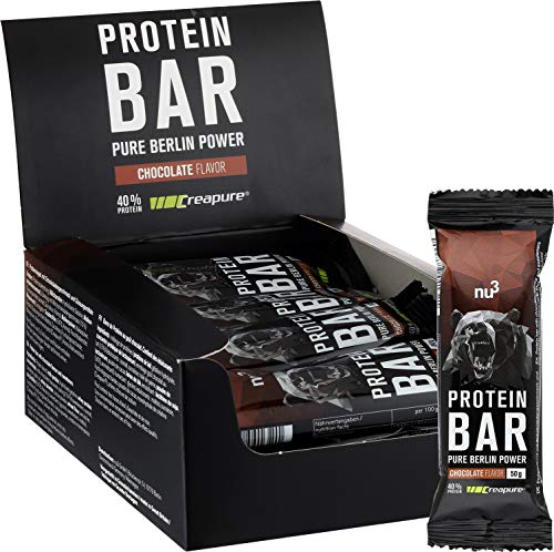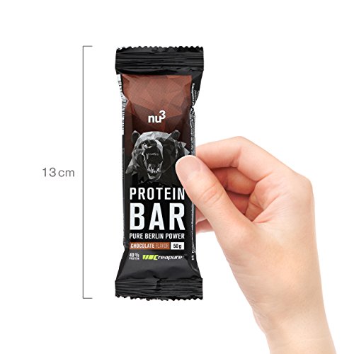 nu3 Barrita de Proteínas - 12 x 50g – Barras con proteína (20g) sabor a chocolate – Para mantener masa muscular – Mejoradas con whey protein, creatina y creapure – 3.95g de fibra y solo 160 Kcal