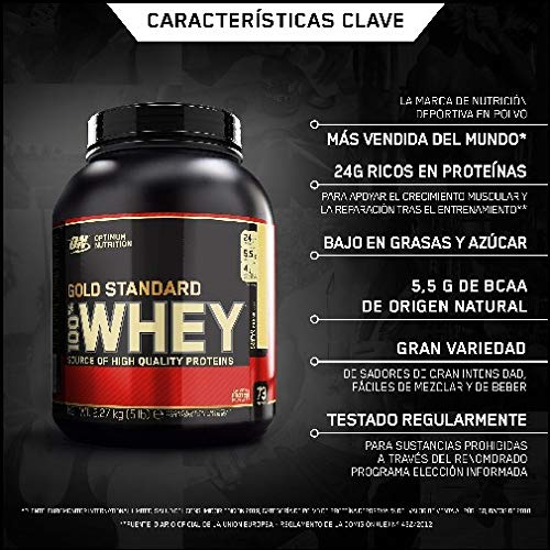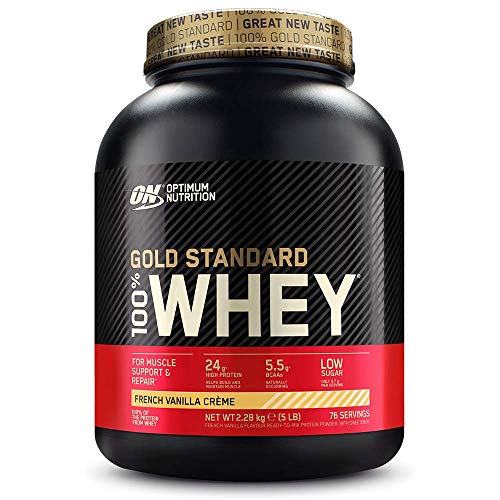 Optimum Nutrition ON Gold Standard 100% Whey Proteína en Polvo Suplementos Deportivos, Glutamina y Aminoacidos, BCAA, Crema de Vainilla Francesa, 73 porciones, 2.27 kg, Embalaje puede variar