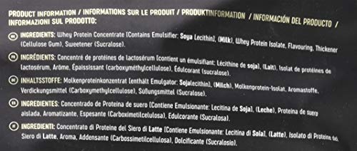 - Proteína de suero de absorción rápida con aislado de proteína de suero de leche como uno de sus ingredientes naturales que ayuda a la creación y recuperación musculares