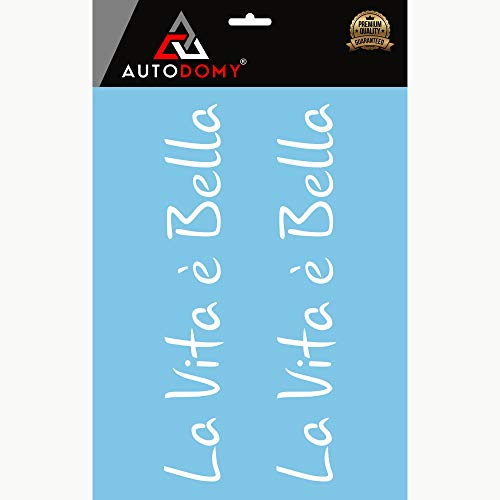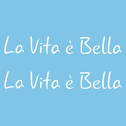Autodomy Pegatinas La Vita e Bella La Vida es Bella Pack 2 Unidades 33 x 5 cm para Coche o Moto. (Blanco)