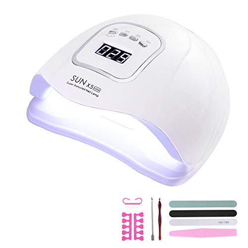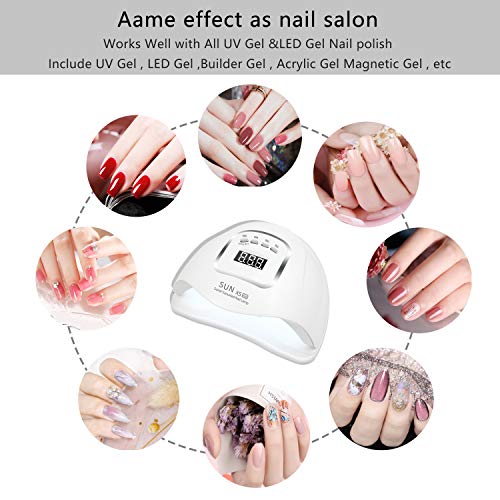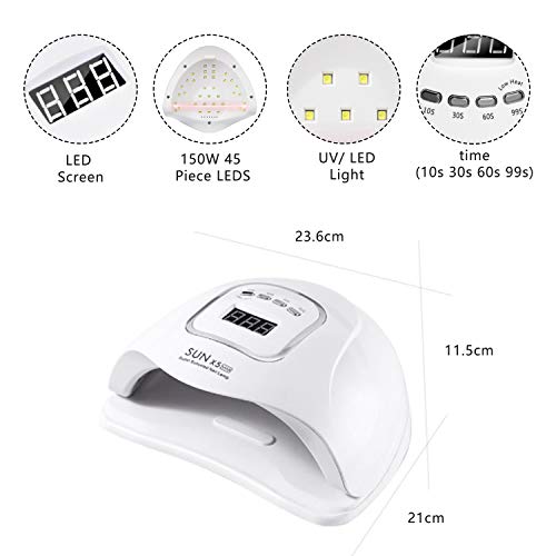 - ?ăLAMPARA DE UNAS UV LED DE 150Wă:La lĂĄmpara de uñas LED UV con cuentas LED de 45 piezas, que proporcionan 150W de alta potencia, toma solo 10-30s para secar uv o esmalte de gel led. Opciones de secado flexibles con botĂłn de configuraciĂłn de 4 temporizadores: 10s / 30s / 60s / 99s (modo de bajo calor).