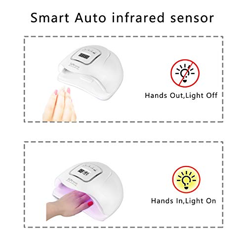 - ï·ăOperaciĂłn FĂĄcil con TemporizaciĂłn y Pantalla LCD ă MOULEI luces de uñas de gel con sensor automĂĄtico para encendido / apagado. Manos adentro, enciende la luz. Manos afuera, apaga la luz. Viene con 10, 30, 60, 99 segundos para satisfacer sus necesidades.
