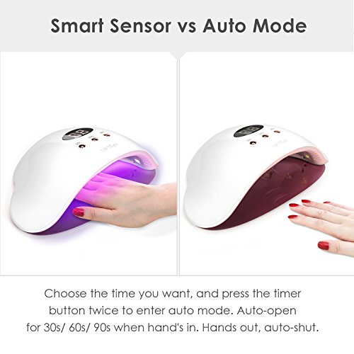 - ăSensor infrarrojo automĂĄtico inteligenteă Sin presionar el botĂłn de configuraciĂłn del temporizador, cambiarĂĄ automĂĄticamente al modo 99s despuĂ©s de poner su mano. AdemĂĄs, esta lĂĄmpara de uñas de gel UV estĂĄ diseñada con un sensor infrarrojo sensible para mayor comodidad: entrega, luces encendidas; repartir las luces apagadas