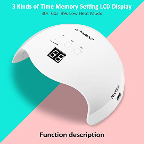 NAVANINO Låmpara Secadora de Uñas LED/UV para Esmalte de Uñas de Gel, Curado Luz en 3 modos para tiempo, Modo de calor bajo 99s y Pantalla LCD. Para Manicura/Pedicura Nail Art en el Hogar ect (40W)