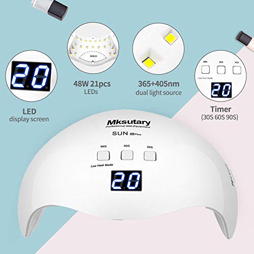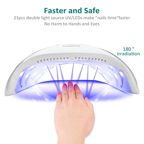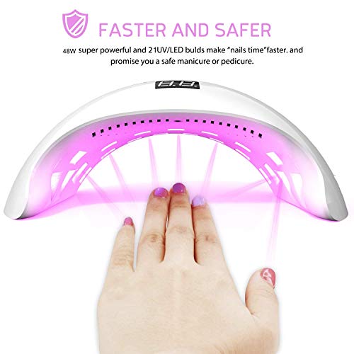 Låmpara UV Profesional, 48W Lampara Led Uñas Profesional con temporizador, Sensor para uñas de gel y Toe Nail Curing 21 Leds con pantalla LCD y temporizador 30s, 60s, 99s