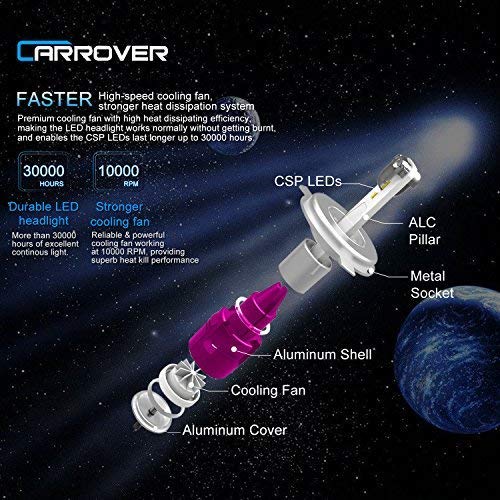 CAR ROVER Bombillas H4 LED 10800 lm faros delanteros y luces de cruce, kit de sustitución para halógeno Xenon Luci-12 V-24 V lámpara 6000 K blanco