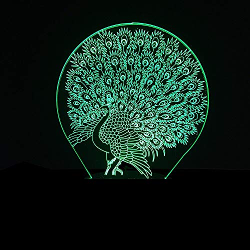 Solo 1 pieza Pavo Real Noche colorida Lámpara de mesa 3d Protección ocular Modelado animal Luz nocturna Luces navideñas Regalo Juguetes para niños