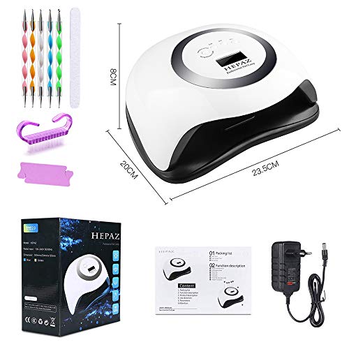 HEPAZ Lampara LED Uñas 168W Profesional Secador de Uñas LED UV Lampara Uñas Gel Semipermanentes Maquina Uñas Luz Lamp con Sensor Automatico,4 Temporizadores Manicura/Pedicure Nail Art Hogar el Salón