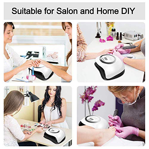 - Resultados profesionales en el hogar - la nueva tecnología de fuente de luz dual cubre un espectro más amplio de lámpara LED para uñas. Adecuado para todo tipo de gel UV y esmalte de gel LED, puede usar diferentes tipos de gel según sus deseos: pegamento UV, pegamento luminiscente rojo , escultura de gel de uñas, pegamento de piedras preciosas y gel de esmalte de uñas, etc. Chip de control de temperatura inteligente integrado para evitar el sobrecalentamiento, proteger sus manos de lesiones.