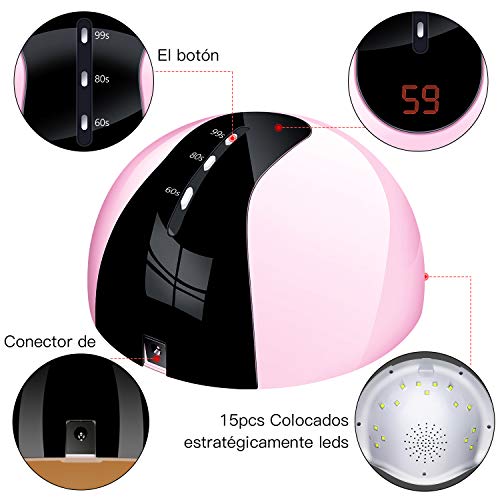DeNOME Lámpara LED UV Uñas Profesional Maquillaje Uñas/Sensor para uñas de gel y Toe Nail Curing/con 3 Temporizadores(Rosa)