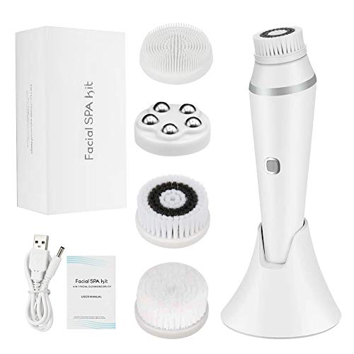 Cepillo de Limpieza Facial Eléctrico, Misiki Cepillo Limpiador Facial 5 en 1, Limpiador de Cara Giratoria Impermeable Masajeadorlos para Remover Lípidos Adicionales, Puntos Negros y Maquillaje