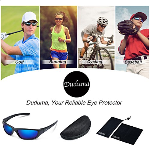 Duduma Gafas de Sol Deportivas Polarizadas Para Hombre Perfectas Para Esquiar Golf Correr Ciclismo TR8116 Súper Liviana Para Hombre y Para Mujer (marco mate negro con lente azul)