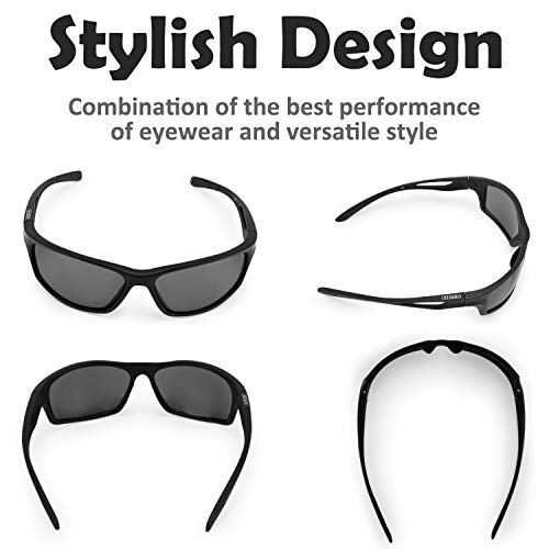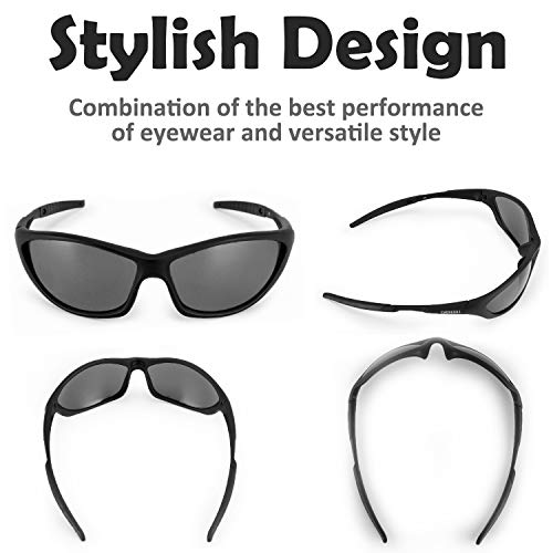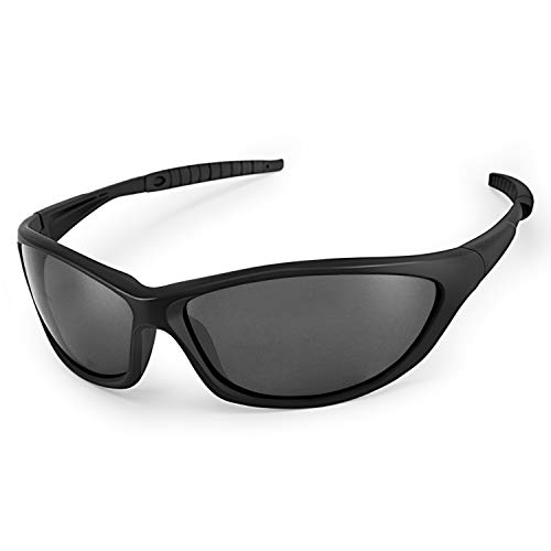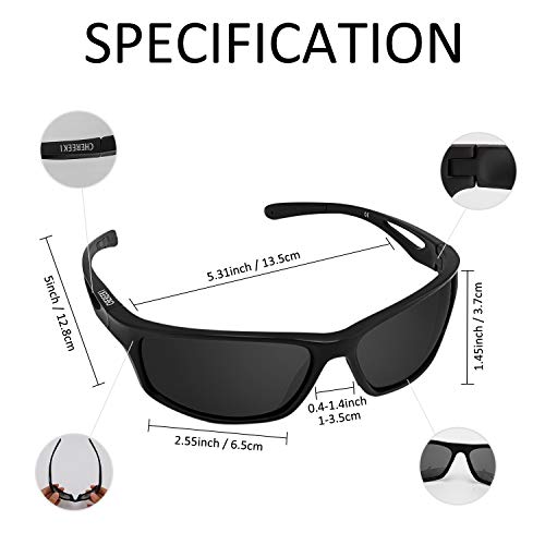 CHEREEKI Gafas De Sol, Polarizadas Deportivas Gafas De Sol con Proteccion UV400 & TR90 Súper Ligero Marco Gafas para La Pesca, el Golf, el Ciclismo (Negro)