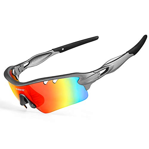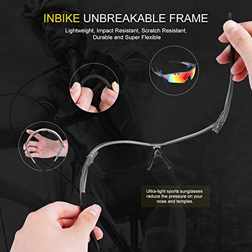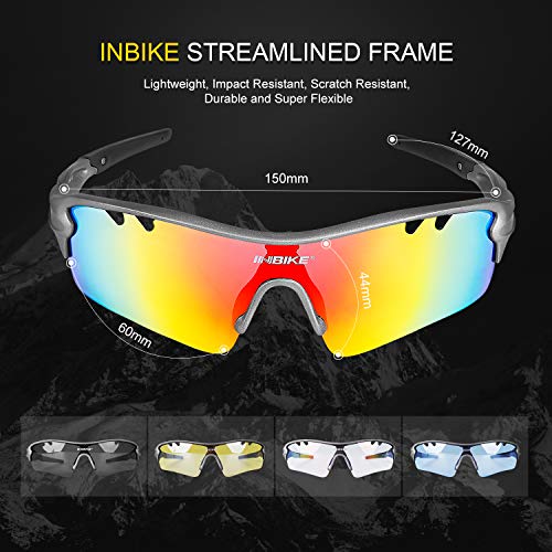 Inbike Gafas de Sol Polarizadas Para Ciclismo con 5 Lentes Intercambiables Uv400 y Montura de Tr-90, Gafas Para Mtb Bicicleta Montaña 100% de Protección Uv(Gris)