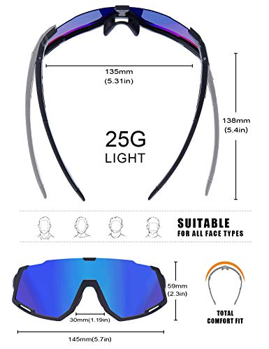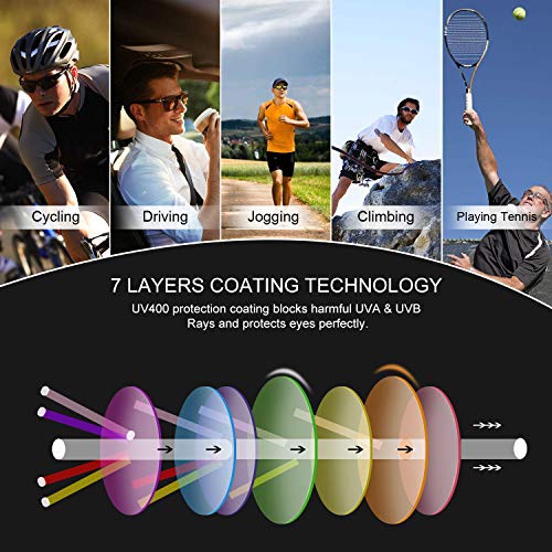 - 【5 lentes intercambiables】- Todos los rayos tapa de la lente 100% de protección UV400, bloquea el 100% UVA y UVB perjudiciales. Restaurar el color verdadero, lo que elimina la luz reflejada y luz dispersa, por lo que el paisaje clara y suave, proteger sus ojos perfectamente. La principal es de color lentes, el amarillo para las actividades nocturnas, el azul para la playa, el claro a nublado, polarizado negro para la conducción y otras actividades.