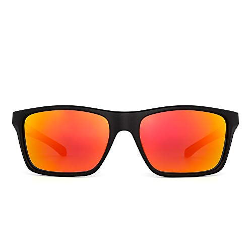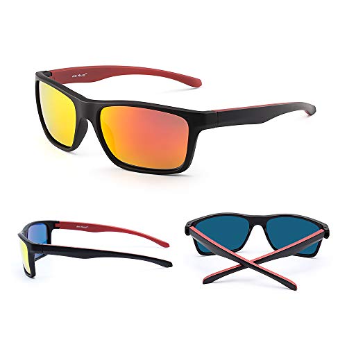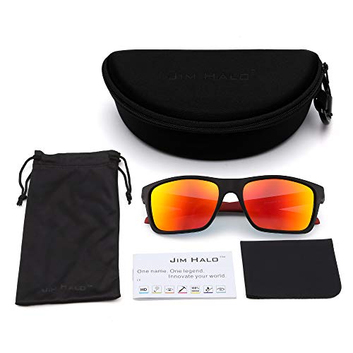 JIM HALO Polarizadas Deportivas Gafas de Sol de Espejo Wrap Alrededor Conducir Pescar Hombre Mujer(Negro/Naranja Espejo)