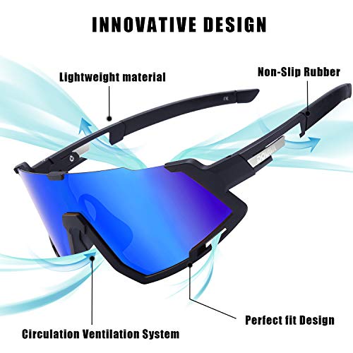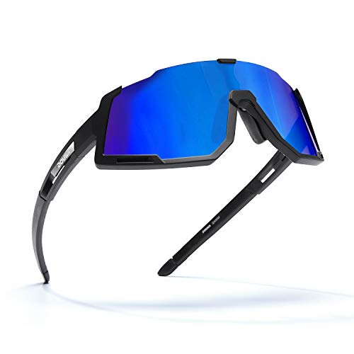 DOVAVA Gafas de sol polarizadas para hombres y mujeres, UV400 deportes ciclismo sombras TR90 marco y 3 lentes intercambiables - Azul -