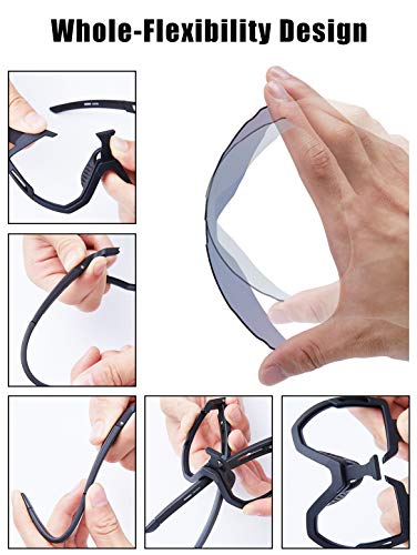- 【Frame Marco TR90】 El diseño de flexibilidad de marco completo proporciona más durabilidad en todos los entornos extremos de uso. El marco puede doblarse bajo presión y contornear su cara cómodamente.