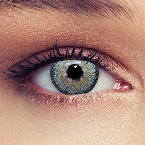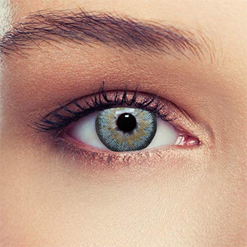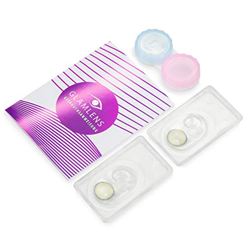 GLAMLENS lentillas de color -gris Jasmine Grey + contenedor. 1 par (2 piezas) - 90 Días - Sin Graduación - 0.00 dioptrías - blandos - Lentes de contacto grises de hidrogel de silicona