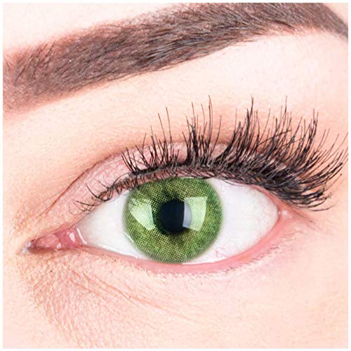 GLAMLENS lentillas de colores verdes Jasmine Green + contenedor. 1 par (2 piezas) - 90 Días - Sin Graduación - 0.00 dioptrías - blandos - Lentes de contacto verde de hidrogel de silicona