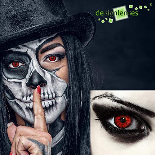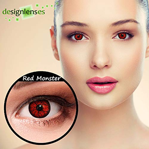 Designlenses, Dos lentillas de color rojo para Halloween monstruo disfraz lentillas sin dioprtías / corregir + gratis caso de lente „Red Monster"