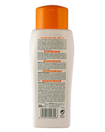 - Leche Solar. Absorción inmediata. Protección Muy Alta
